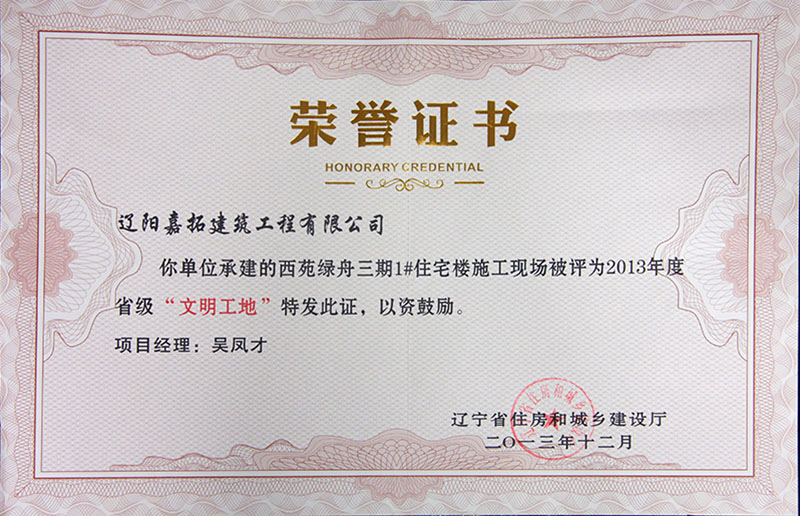 2013年度遼寧省建筑業(yè)企業(yè)優(yōu)秀項目經(jīng)理