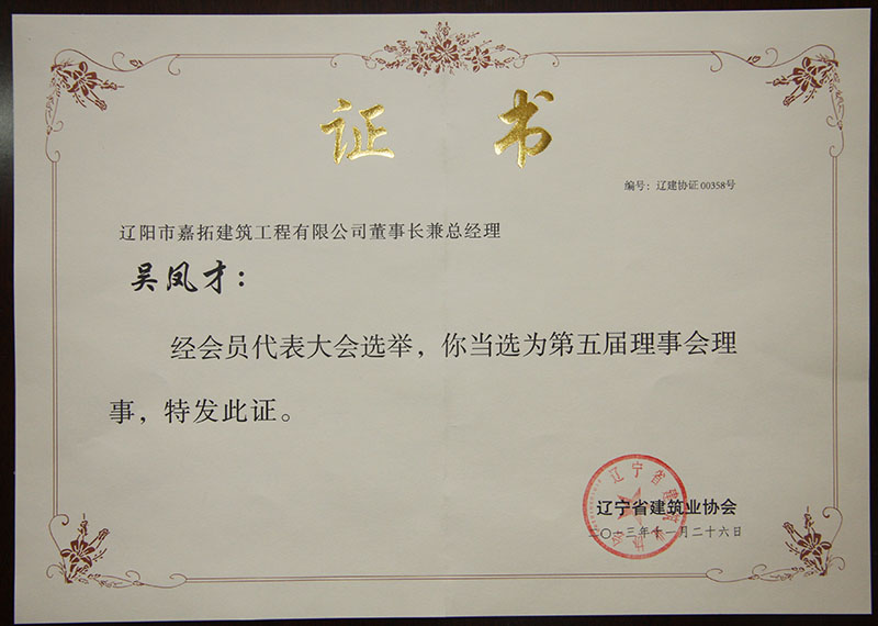 遼寧省建筑業(yè)協(xié)會第五屆理事會理事