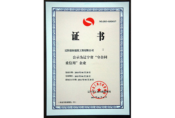 2014-2015年度遼寧省“守合同重信用”企業(yè)
