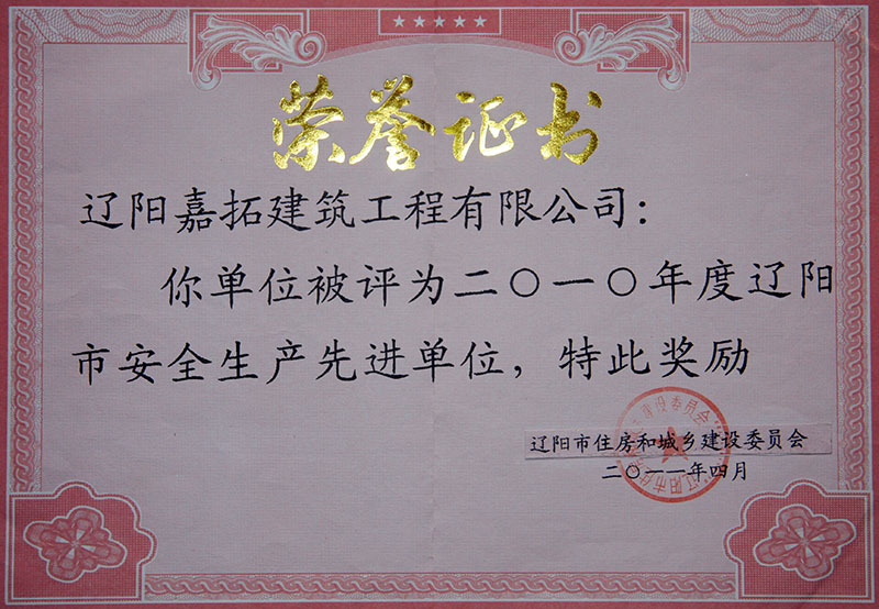 2009年度安全生產(chǎn)優(yōu)秀項目經(jīng)理部