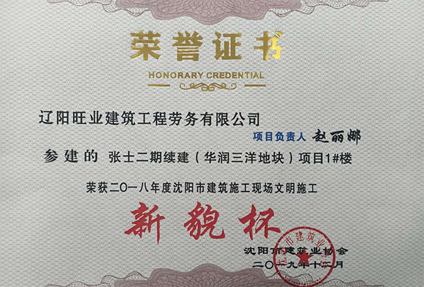 2018年度沈陽(yáng)建筑施工現(xiàn)場(chǎng)文明施工新茂杯
